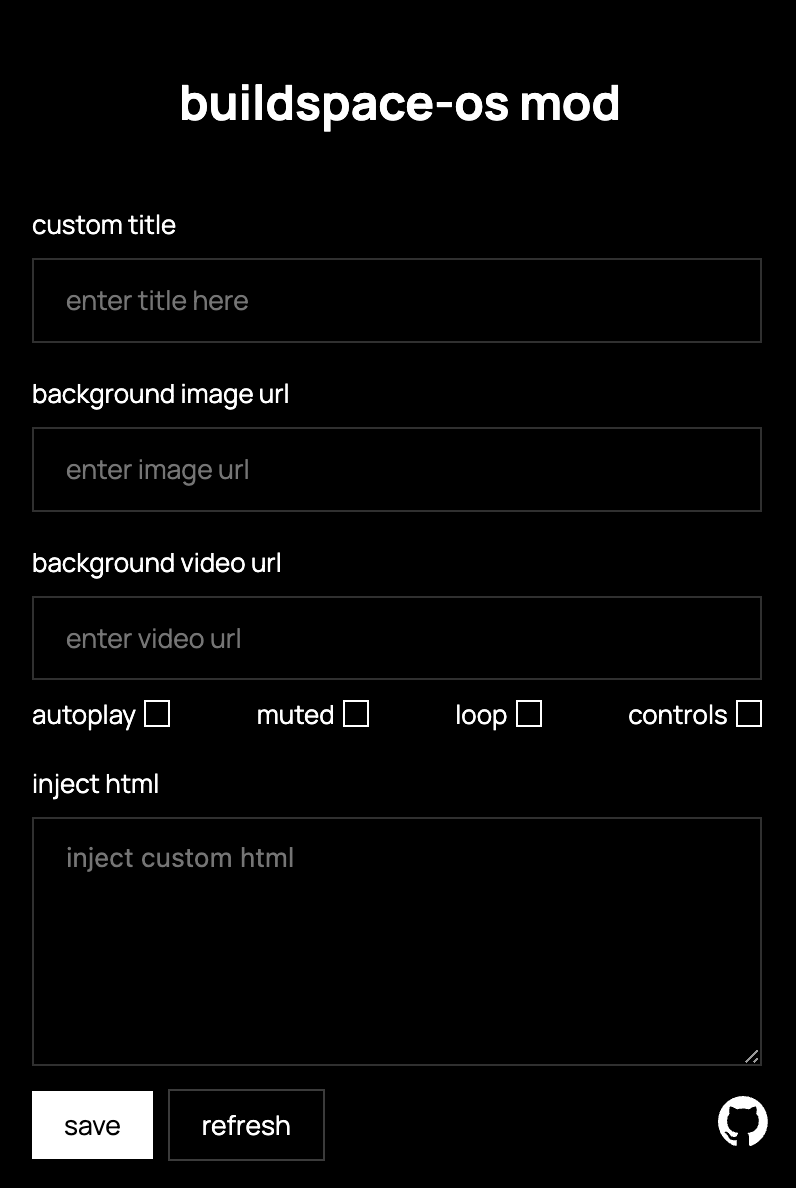 ...but, I wanted to change the background video with my wallpaper. So, I looked into the code and found out that it was rendering the buildspace home page in an iframe. So, I thought, why not just inject my own css and js into the iframe to change the background video.